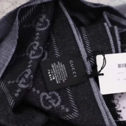 Sciarpa lavorata a maglia con motivo jacquard GG grigia